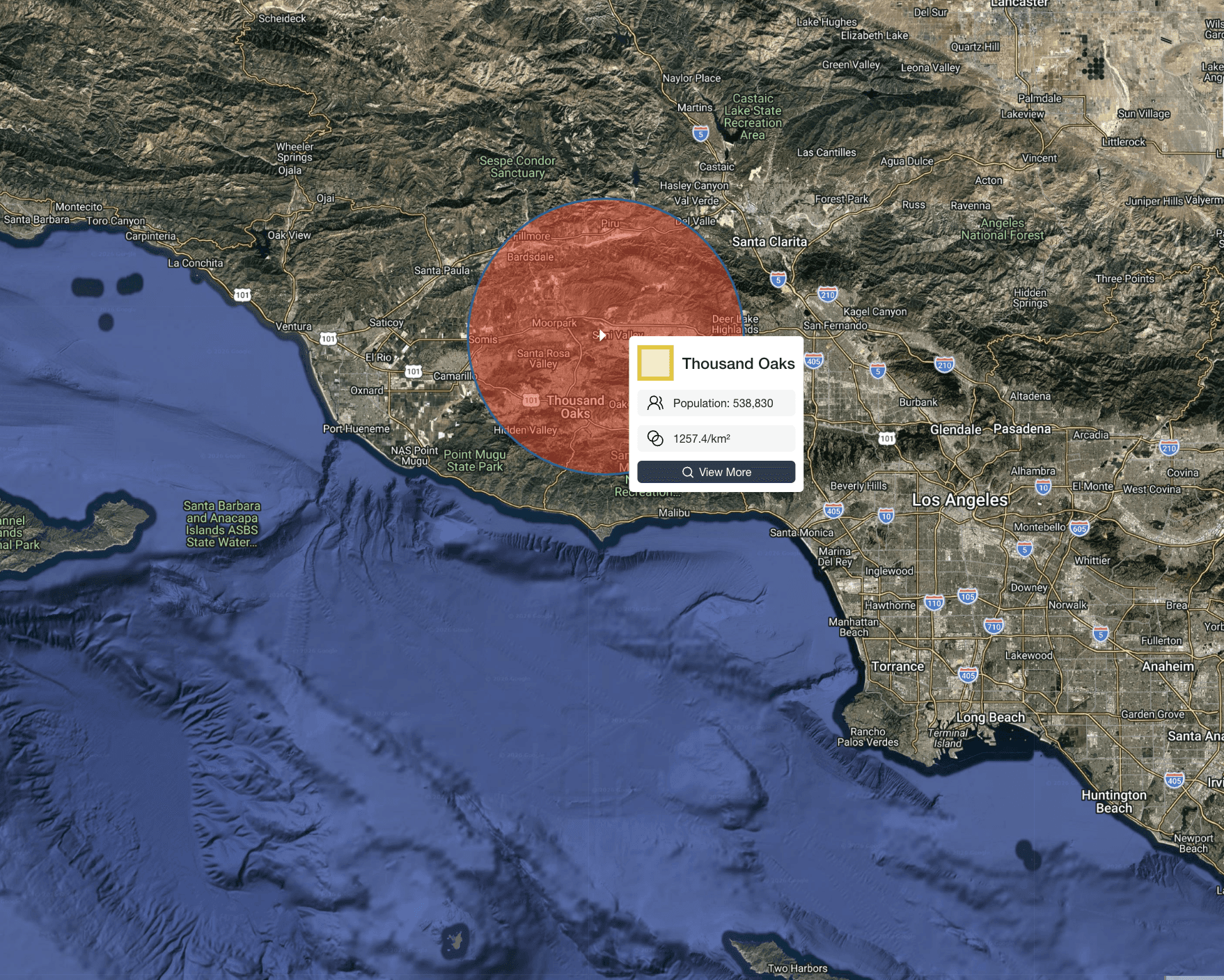 Choose a location, define a radius, and generate the area. Population Explorer calculates how many people live within that boundary instantly.