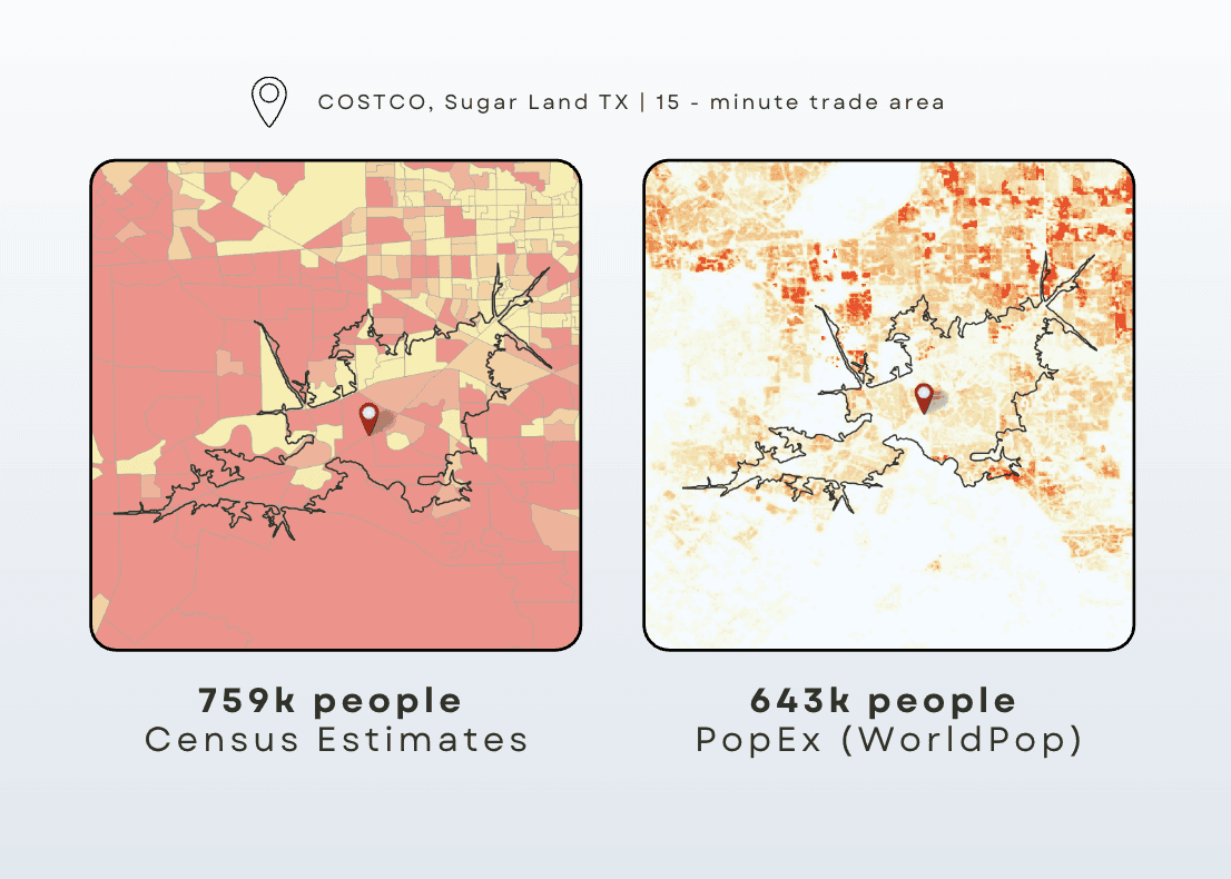 Traditional census data often lags behind growth. Population Explorer’s datasets are better suited for capturing population shifts in rapidly developing regions.