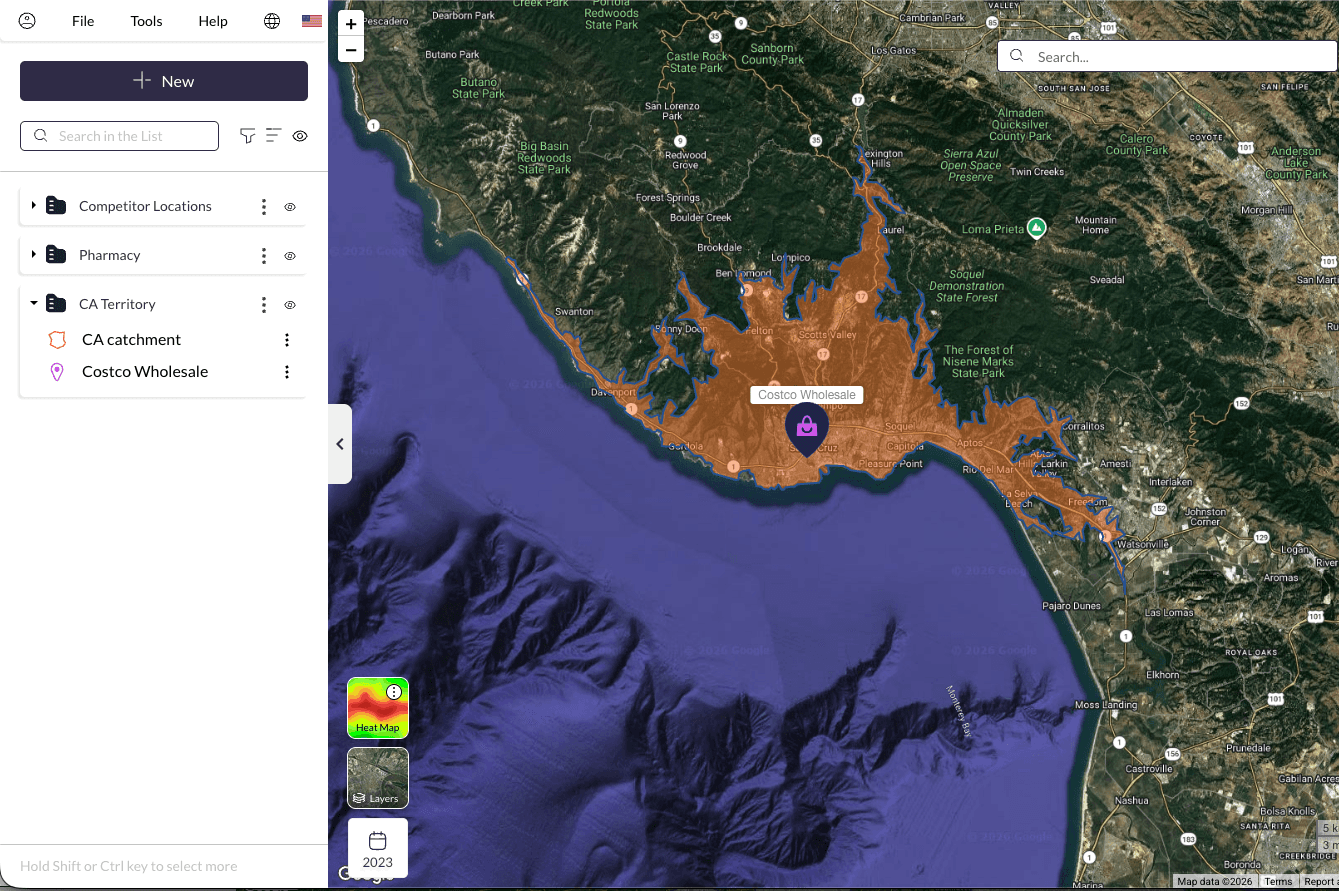 Draw or import a territory, radius, or custom boundary